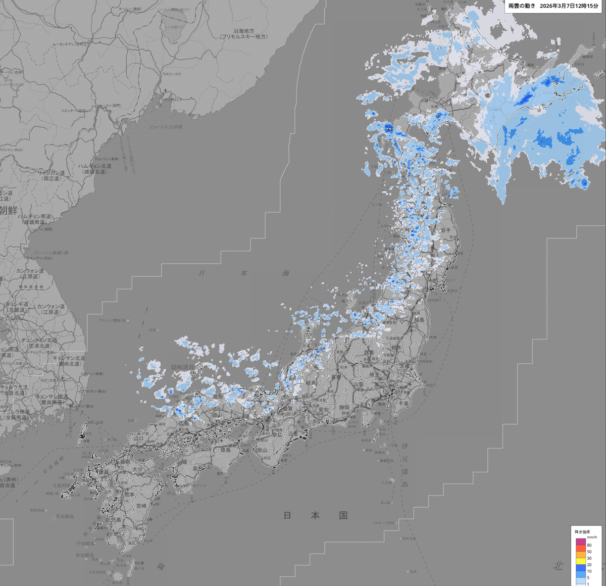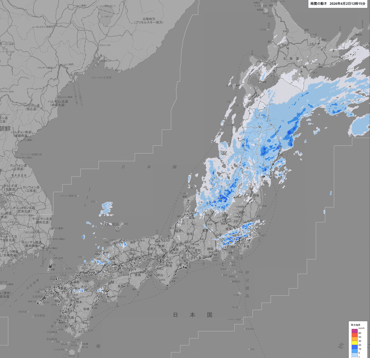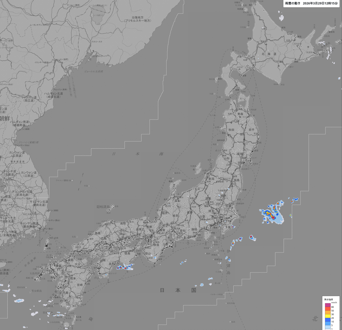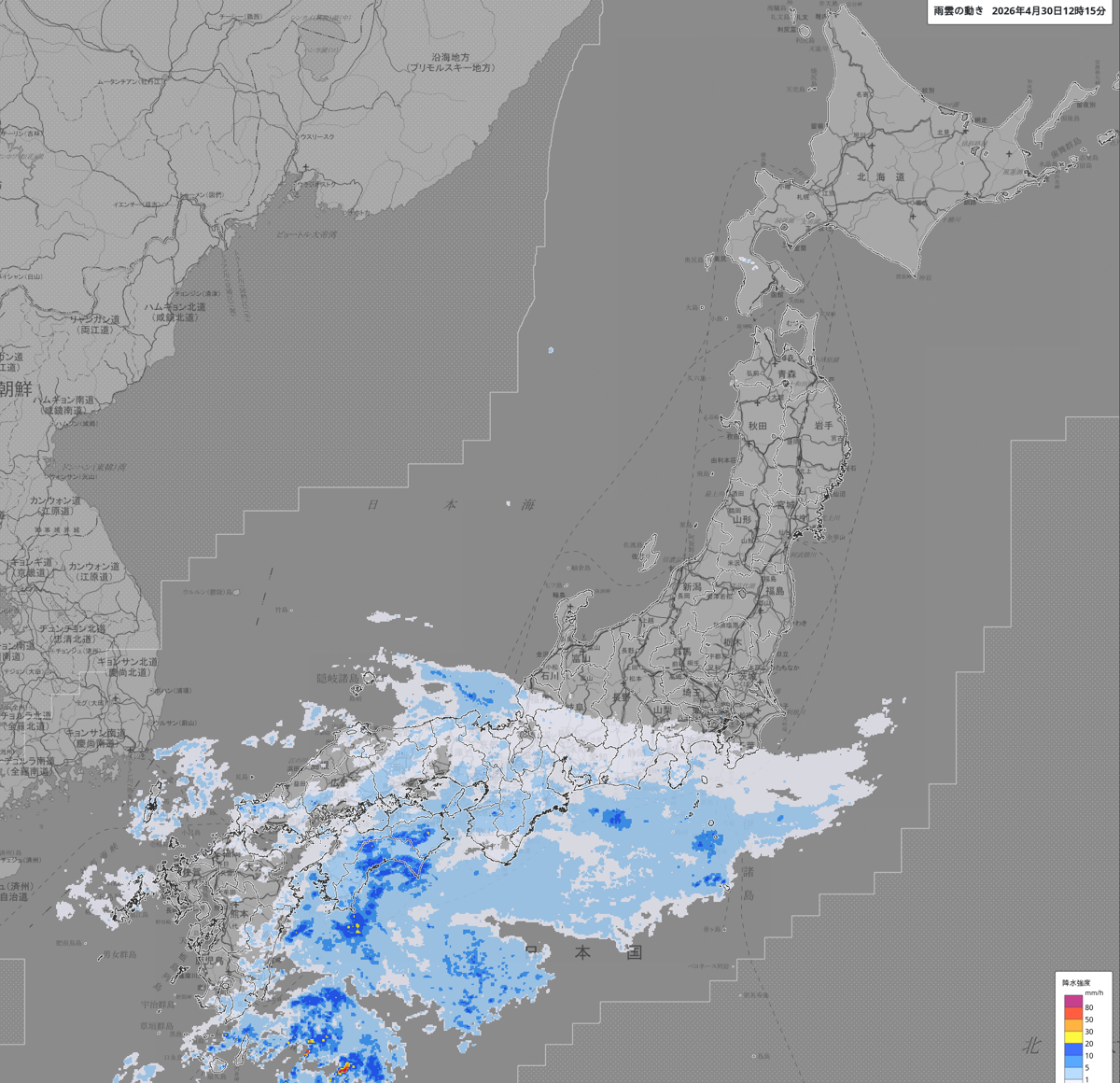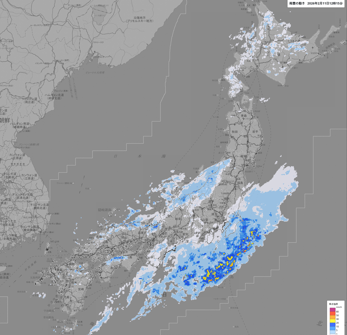雨雲の動き: https://www.jma.go.jp/bosai/nowc/#lat:35.155846/lon:138.383789/zoom:5/colordepth:normal/elements:hrpns