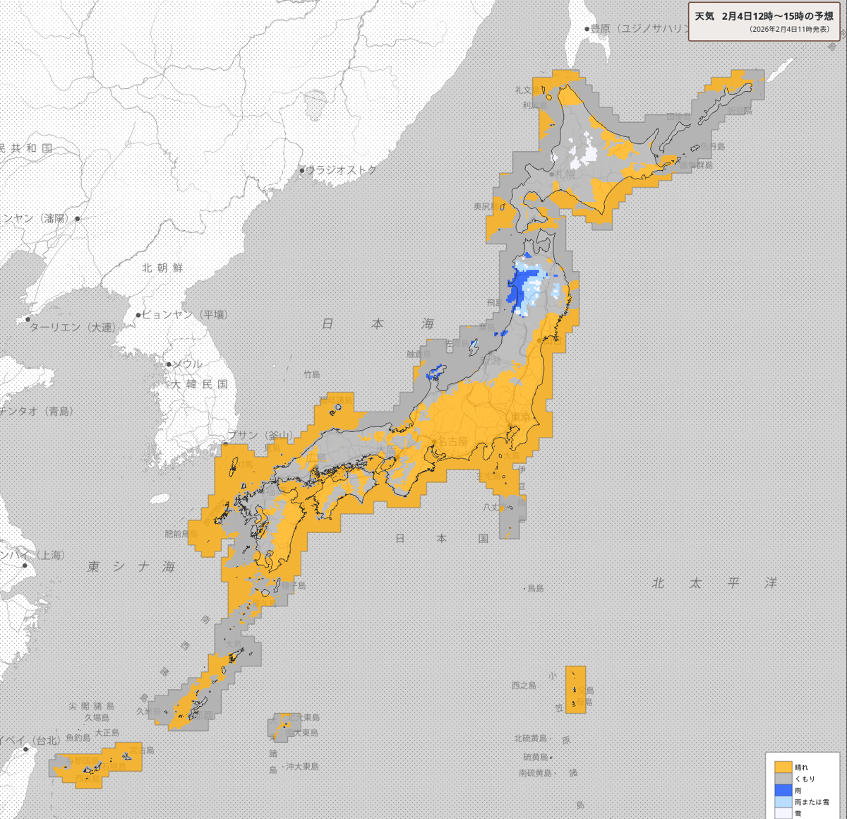 | 2026/02/04(昨日 12時) | 2026/02/03(2日前 12時) | 2026/02/02(3日前 12時) |