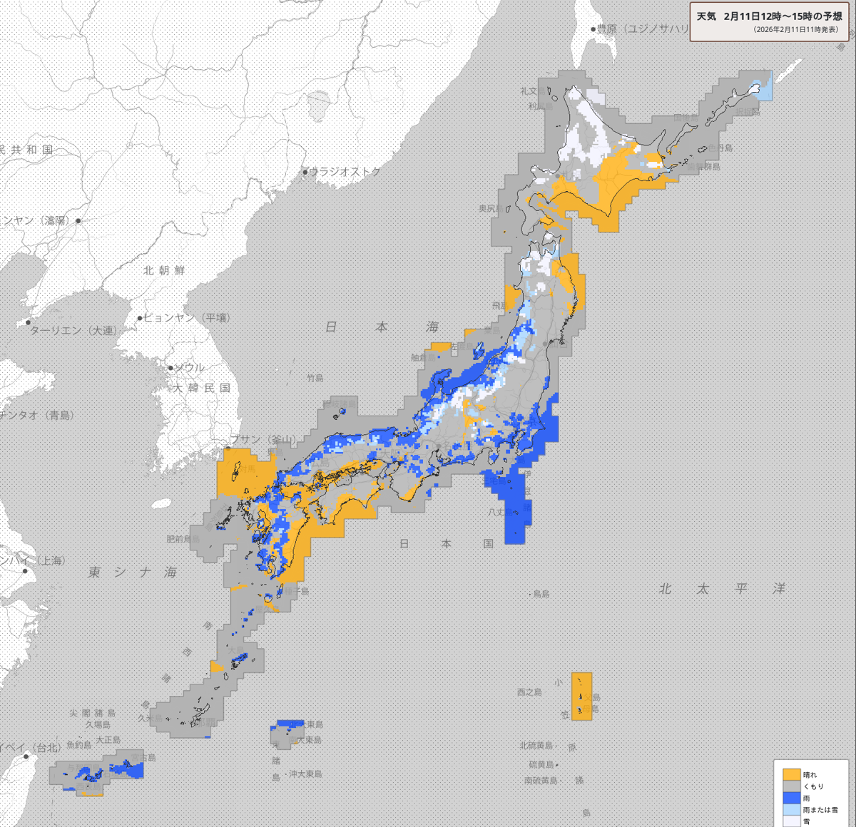| 2026/02/11(昨日 12時) | 2026/02/10(2日前 12時) | 2026/02/09(3日前 12時) |