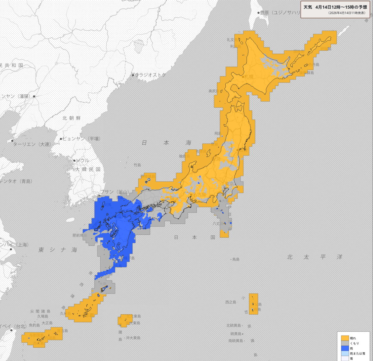 | 2026/04/13(昨日 12時) | 2026/04/12(2日前 12時) | 2026/04/11(3日前 12時) |