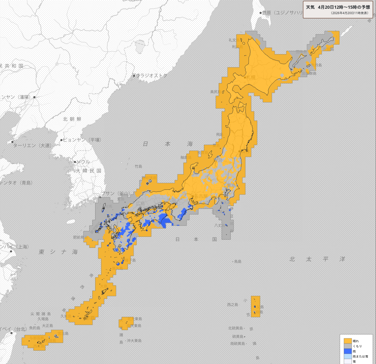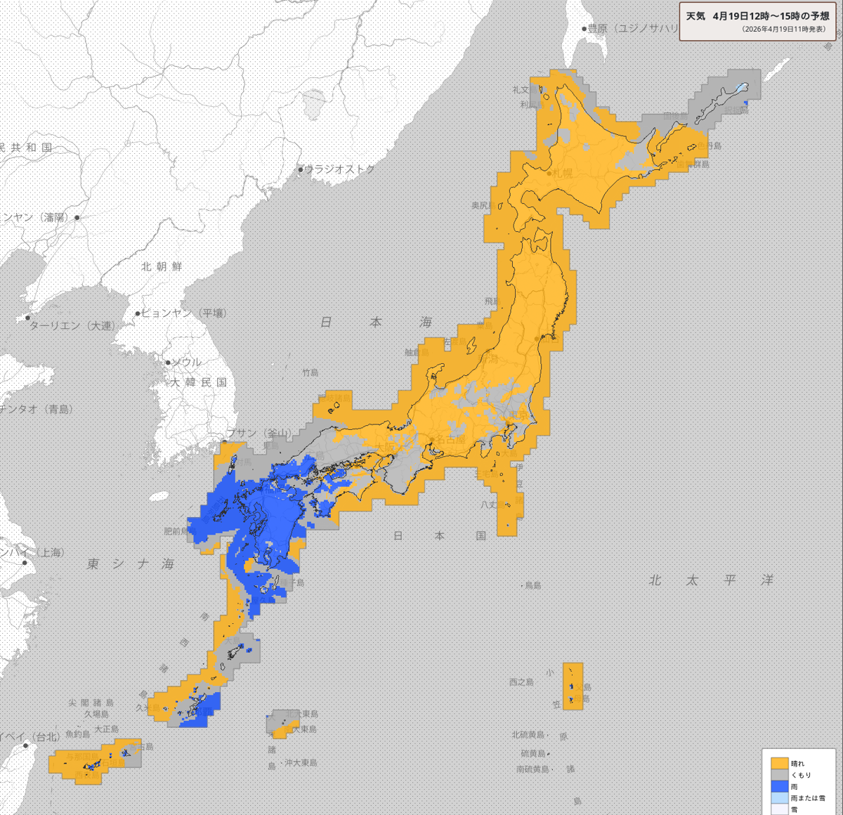 | 2026/04/19(昨日 12時) | 2026/04/18(2日前 12時) | 2026/04/17(3日前 12時) |