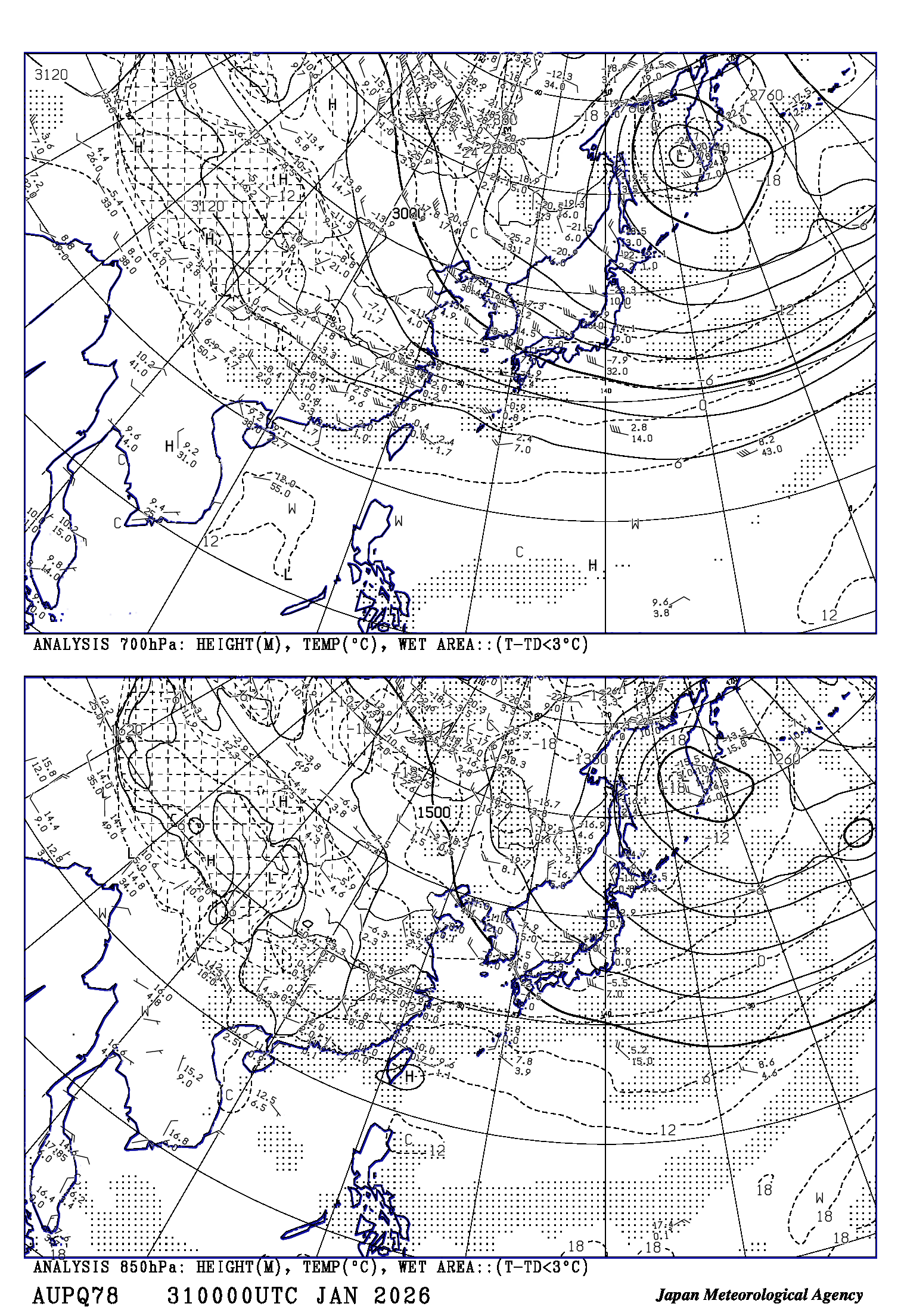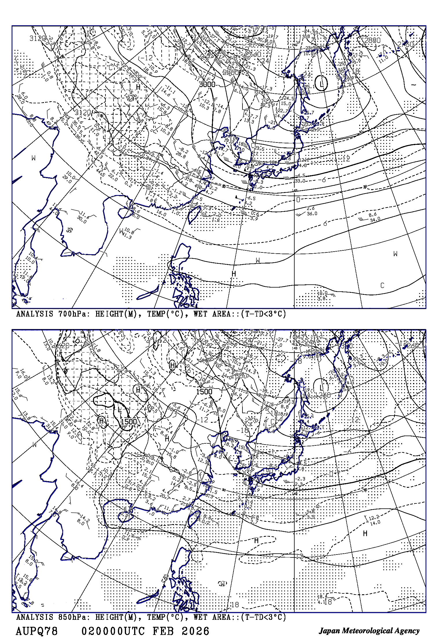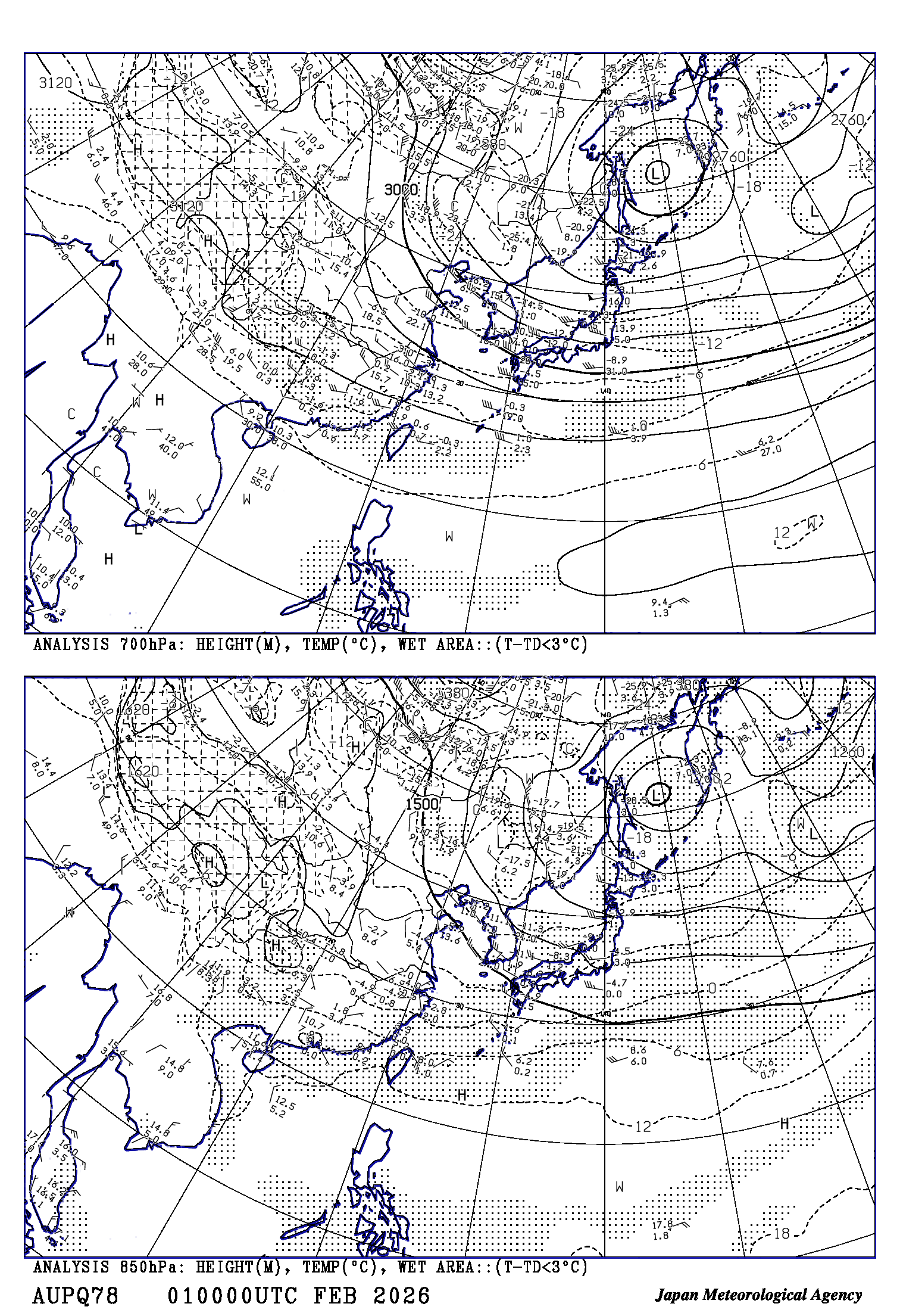高層天気図に表示されている時刻は協定世界時(UTC)です。
