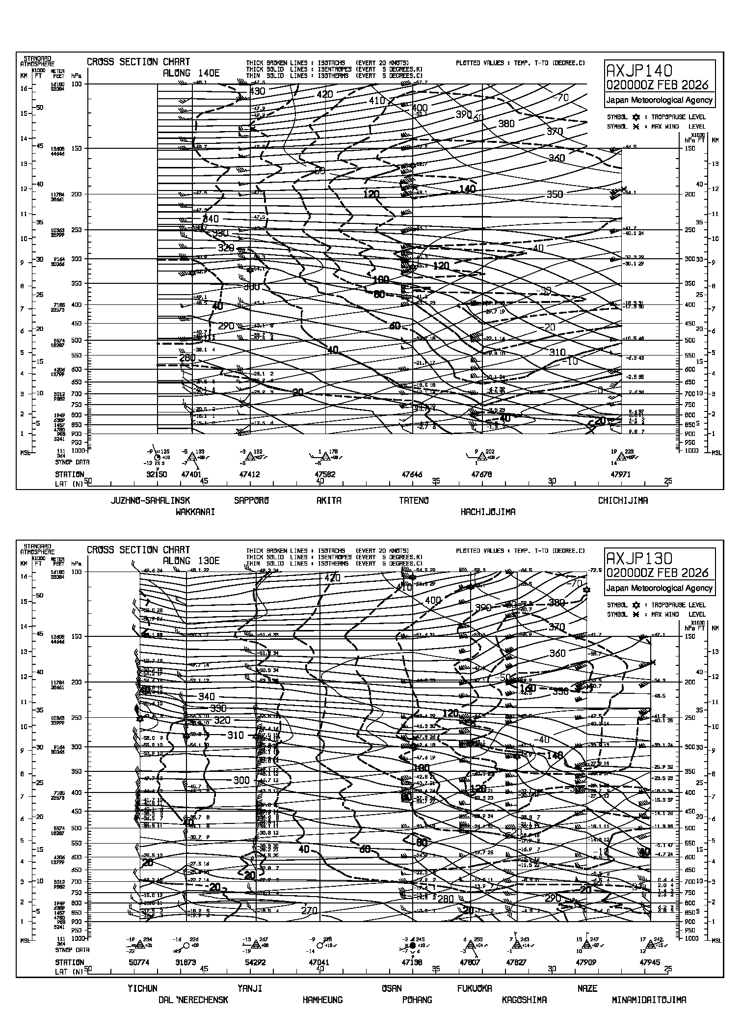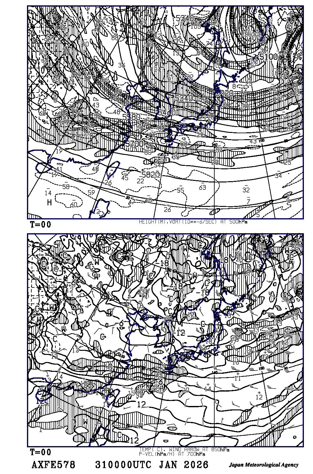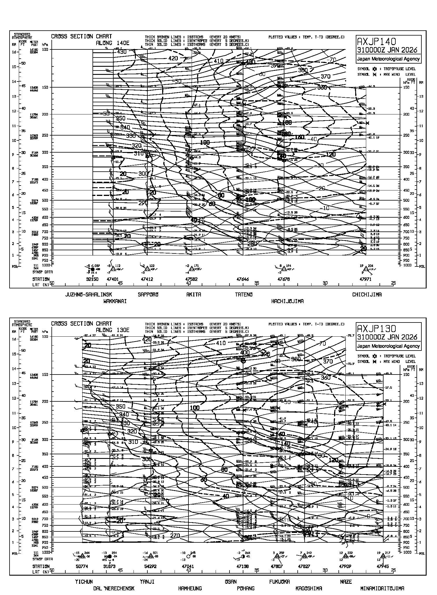 高層天気図に表示されている時刻は協定世界時(UTC)です。
