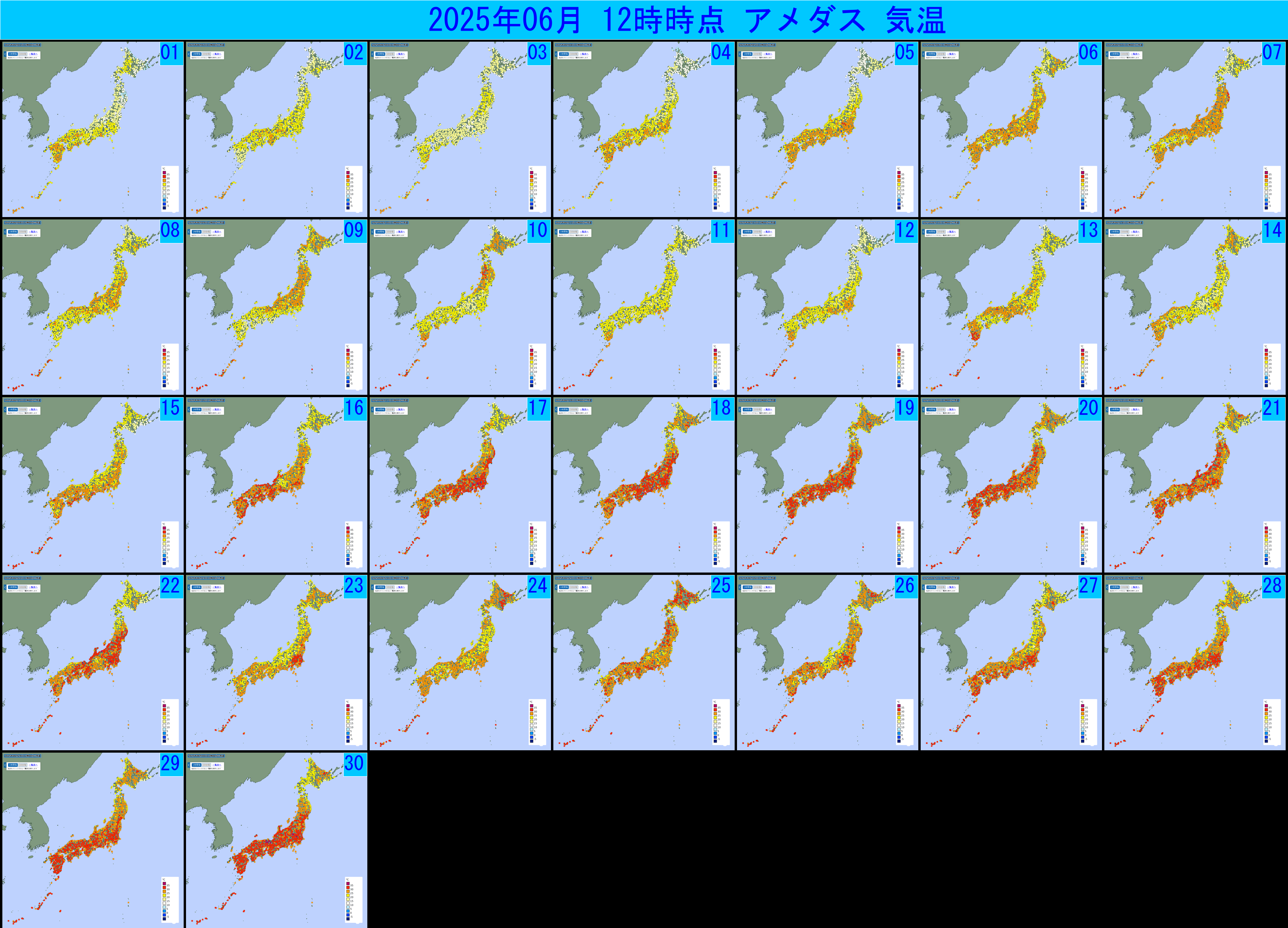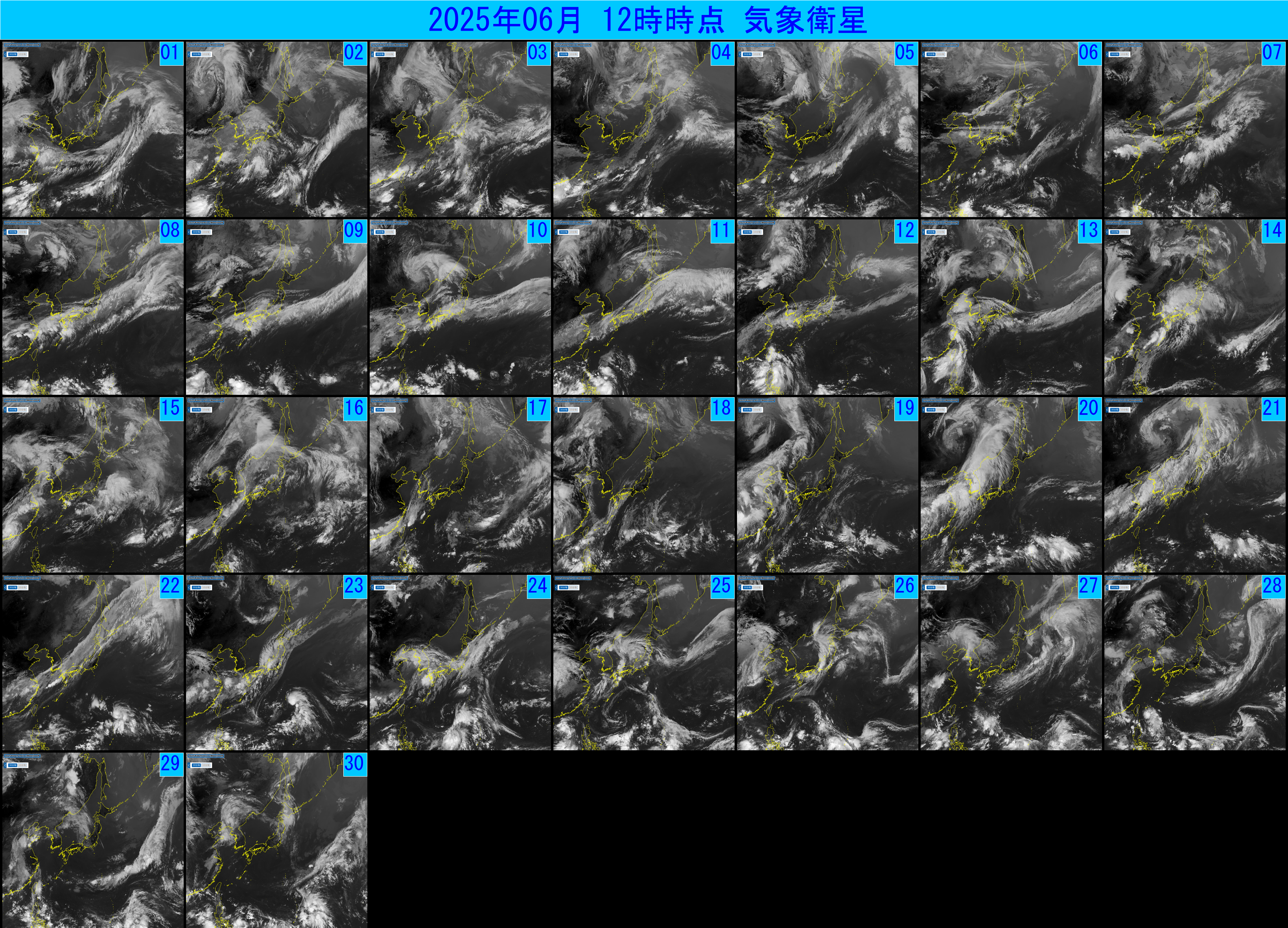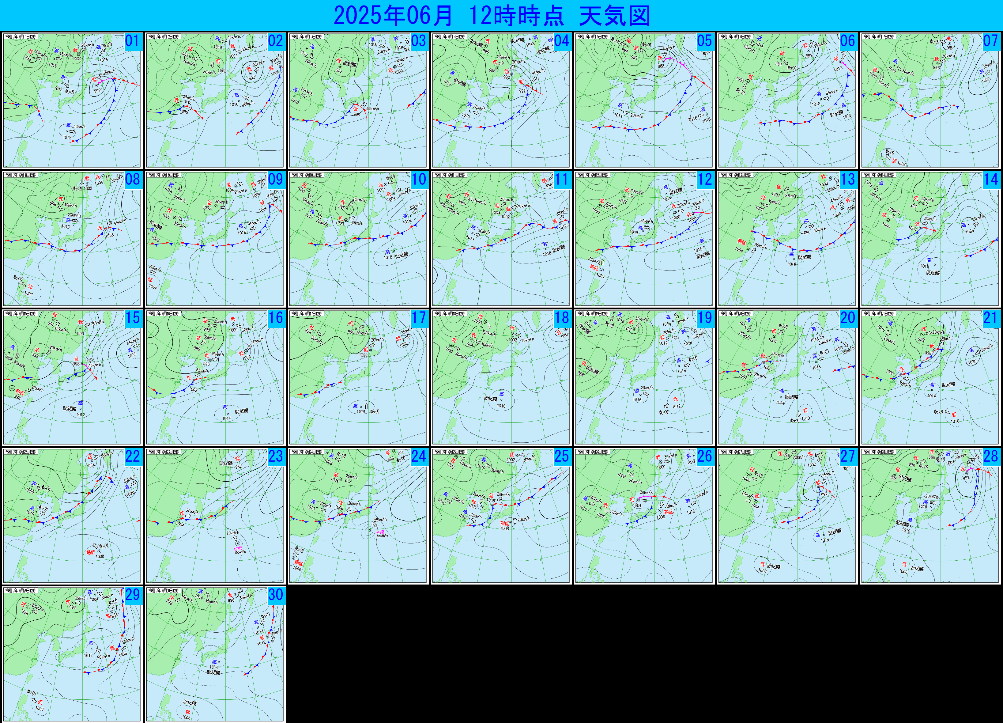 2025年 6月 12時時点の気象画像 画像をクリックすると拡大され、スクロールで次の画像を見ることができます。引用元:気象庁HP(加工して使用) 種類毎 日毎...