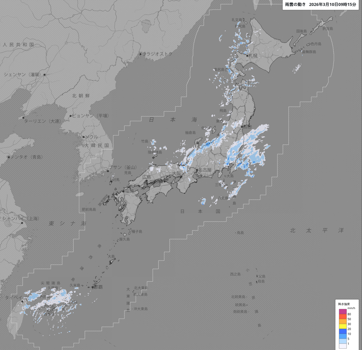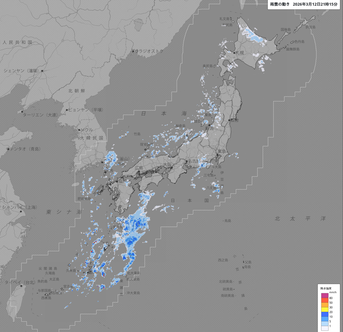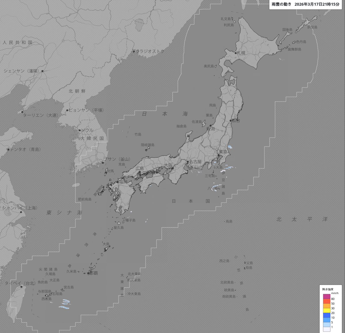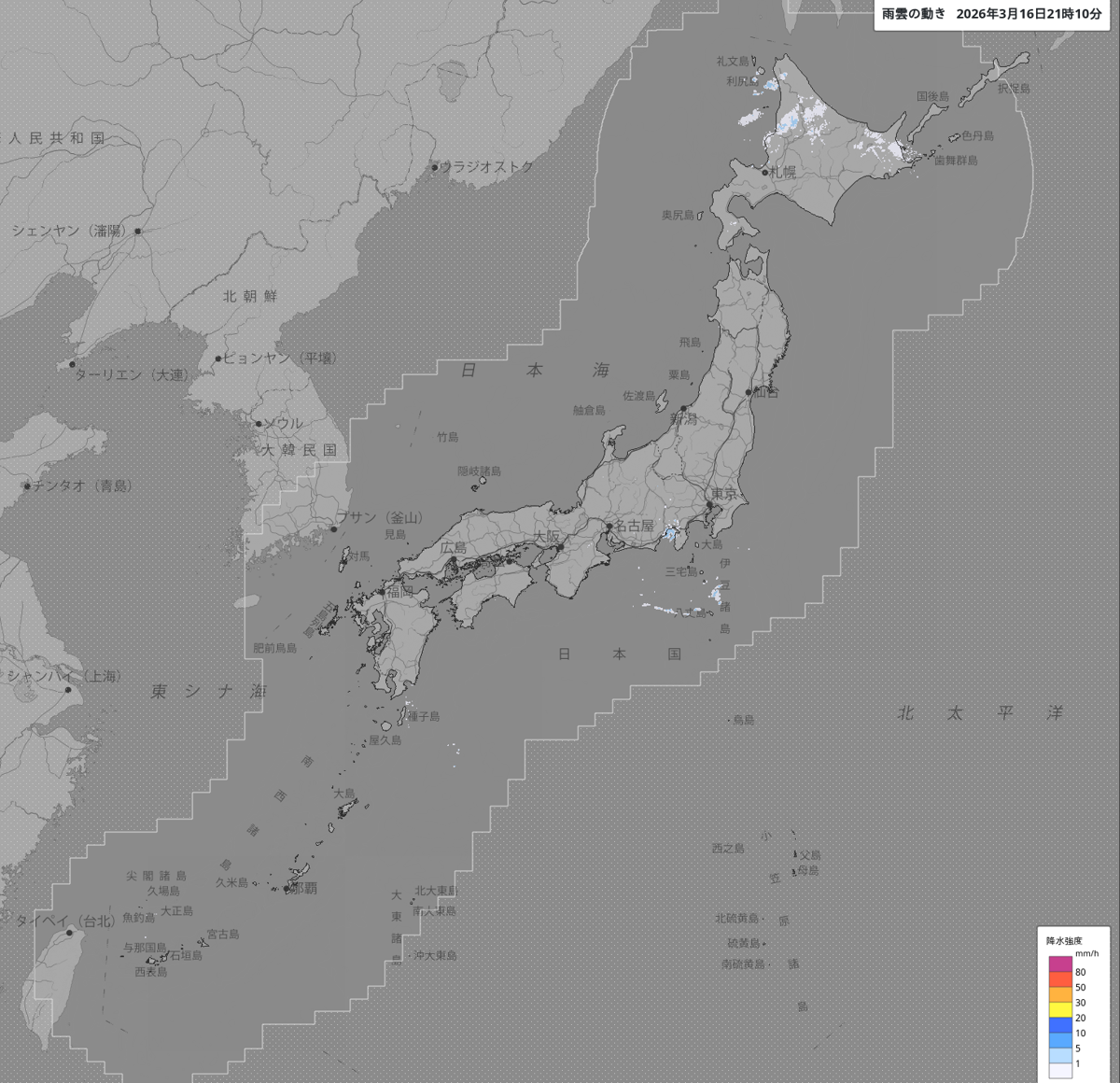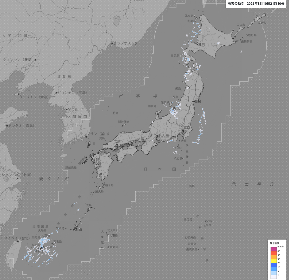 指定日の10日前からの9時と21時の気象画像を順次表示しています。