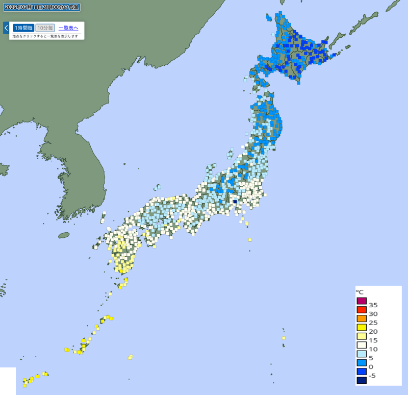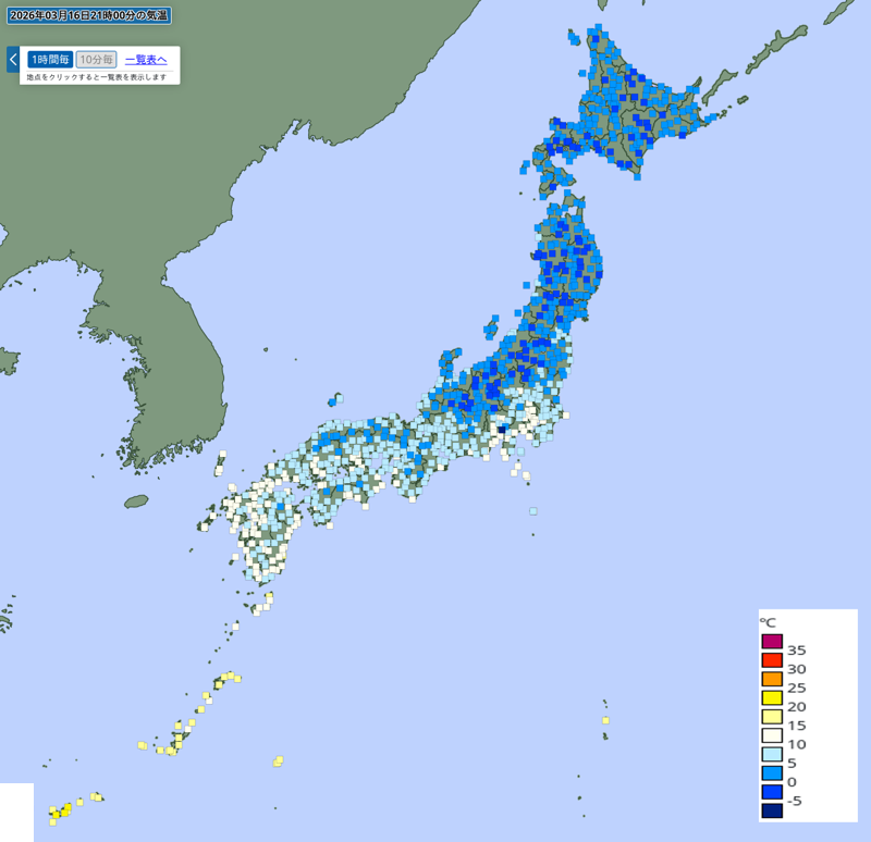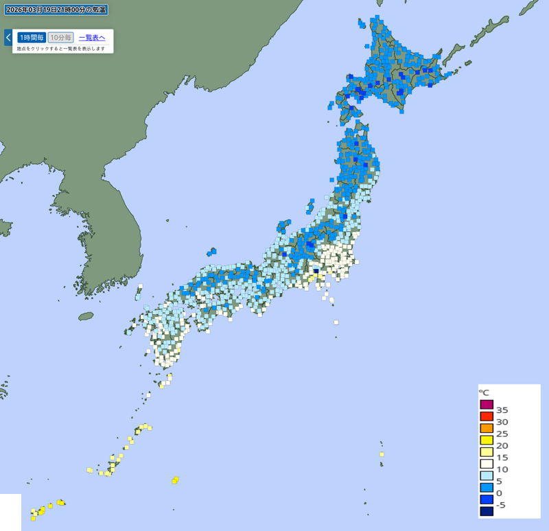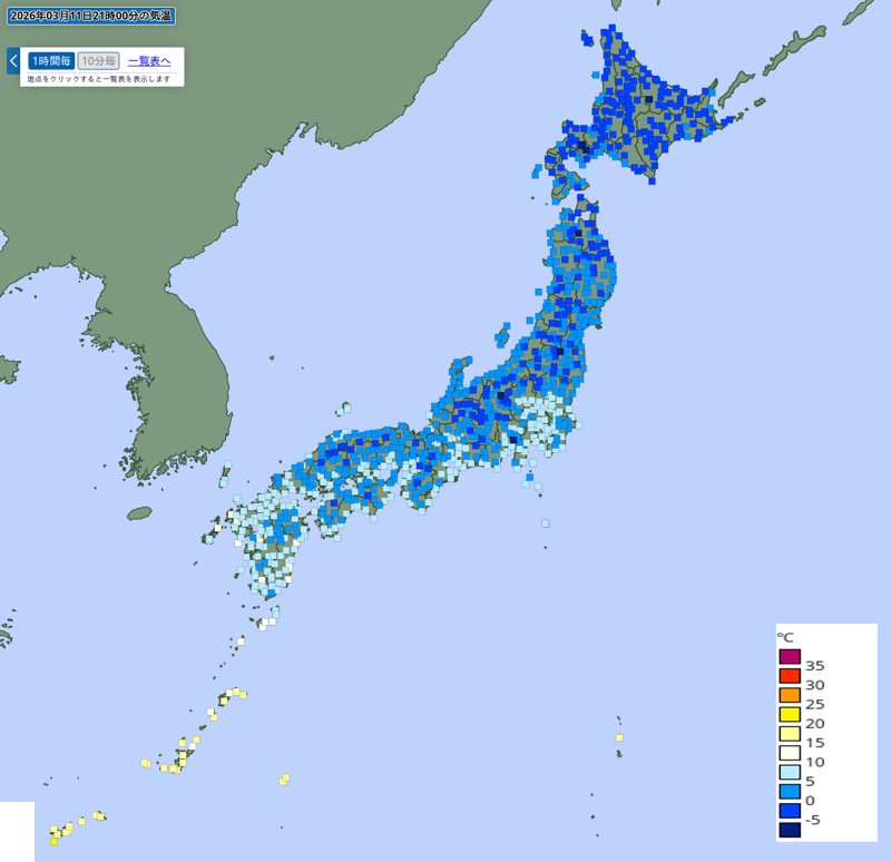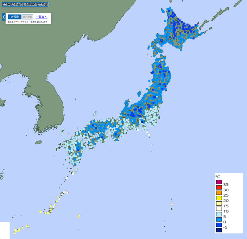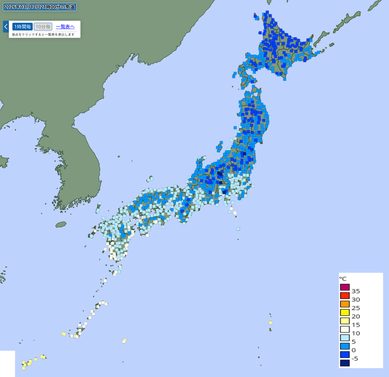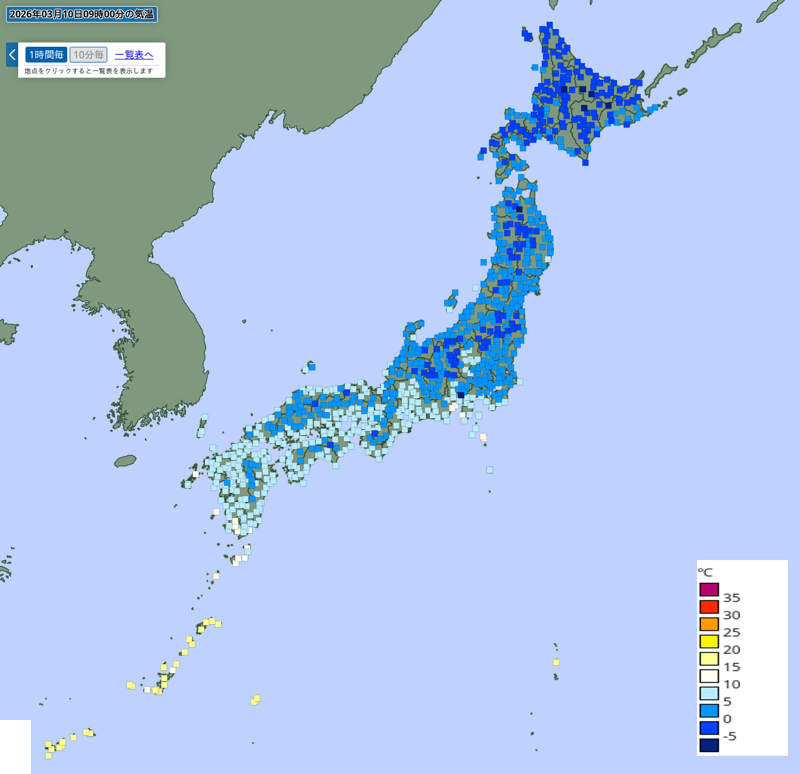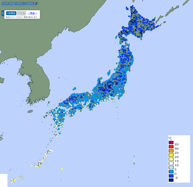 指定日の10日前からの9時と21時の気象画像を順次表示しています。
