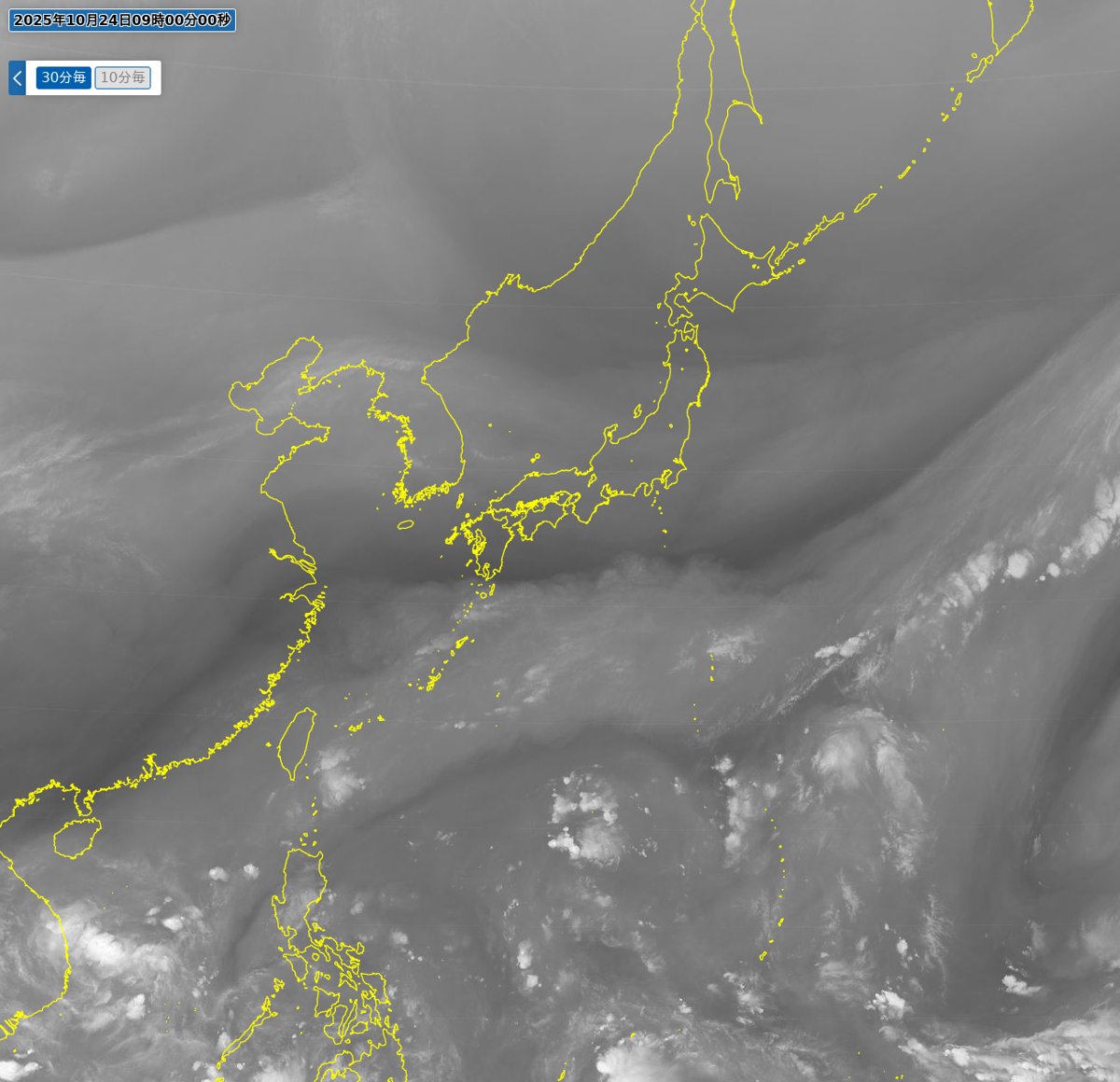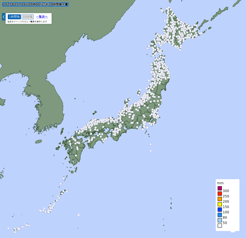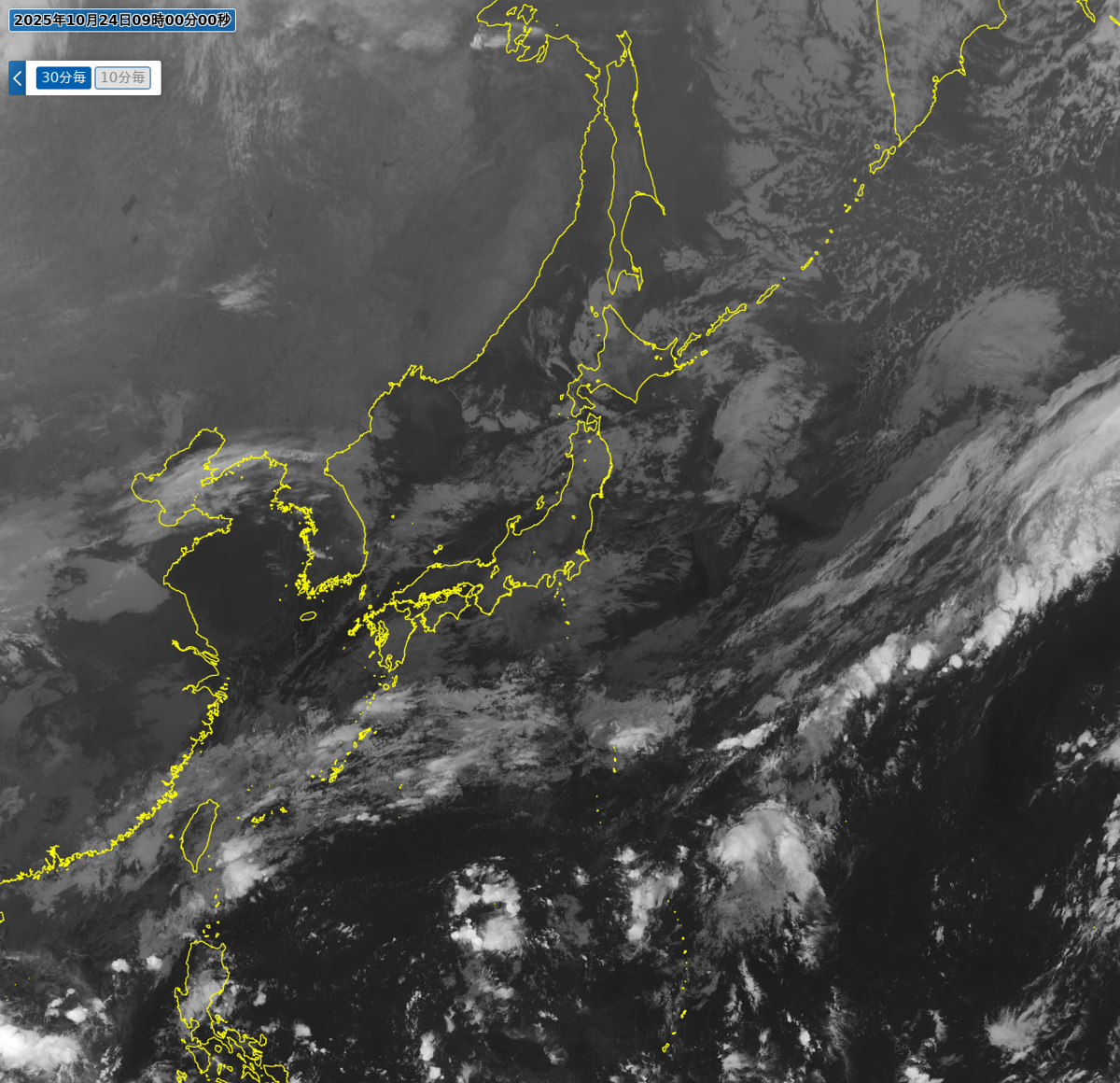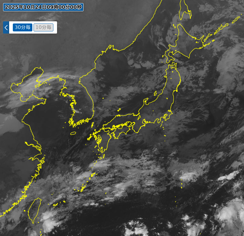 表示開始日付から10日前までの天気図・気象衛星・アメダスを並べて表示しています。