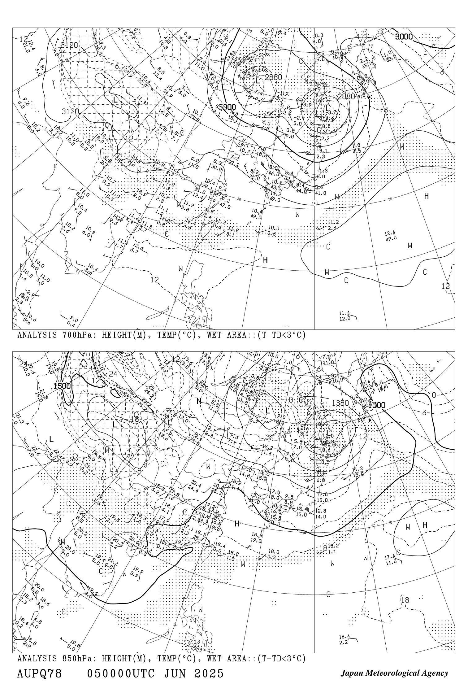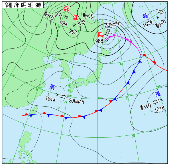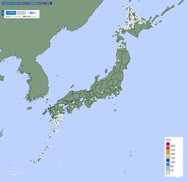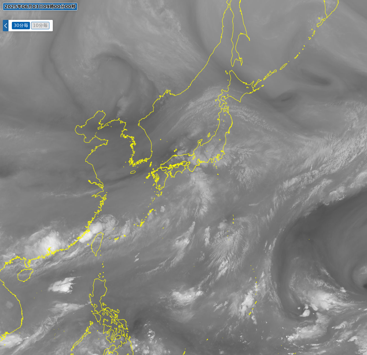 表示開始日付から10日前までの天気図・気象衛星・アメダスを並べて表示しています。
