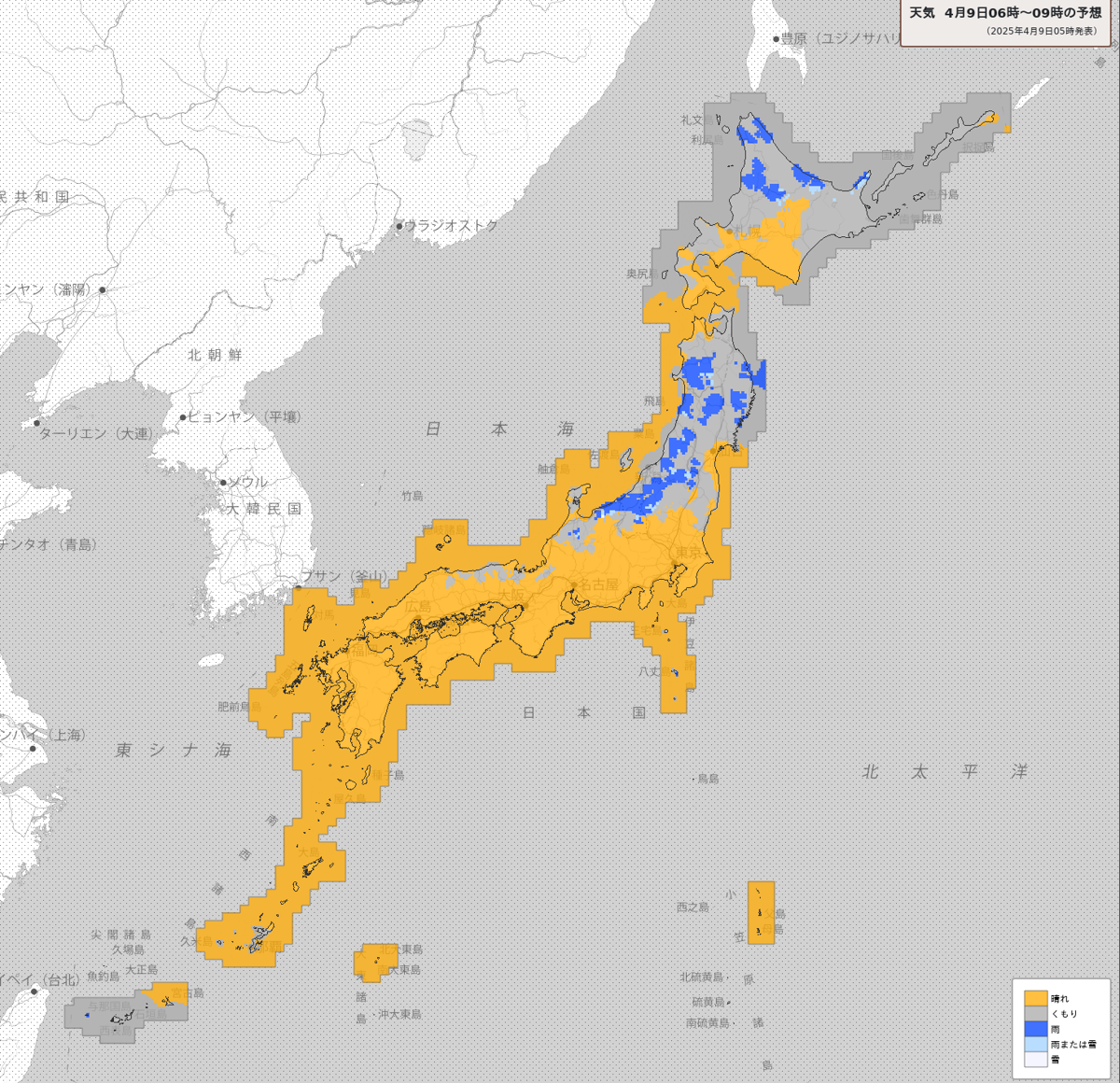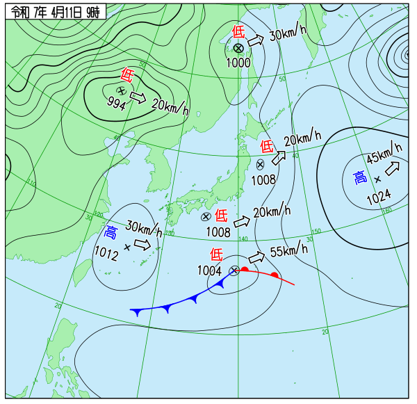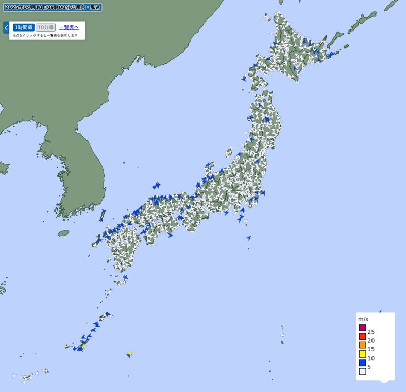表示開始日付から10日前までの天気図・気象衛星・アメダスを表示しています。