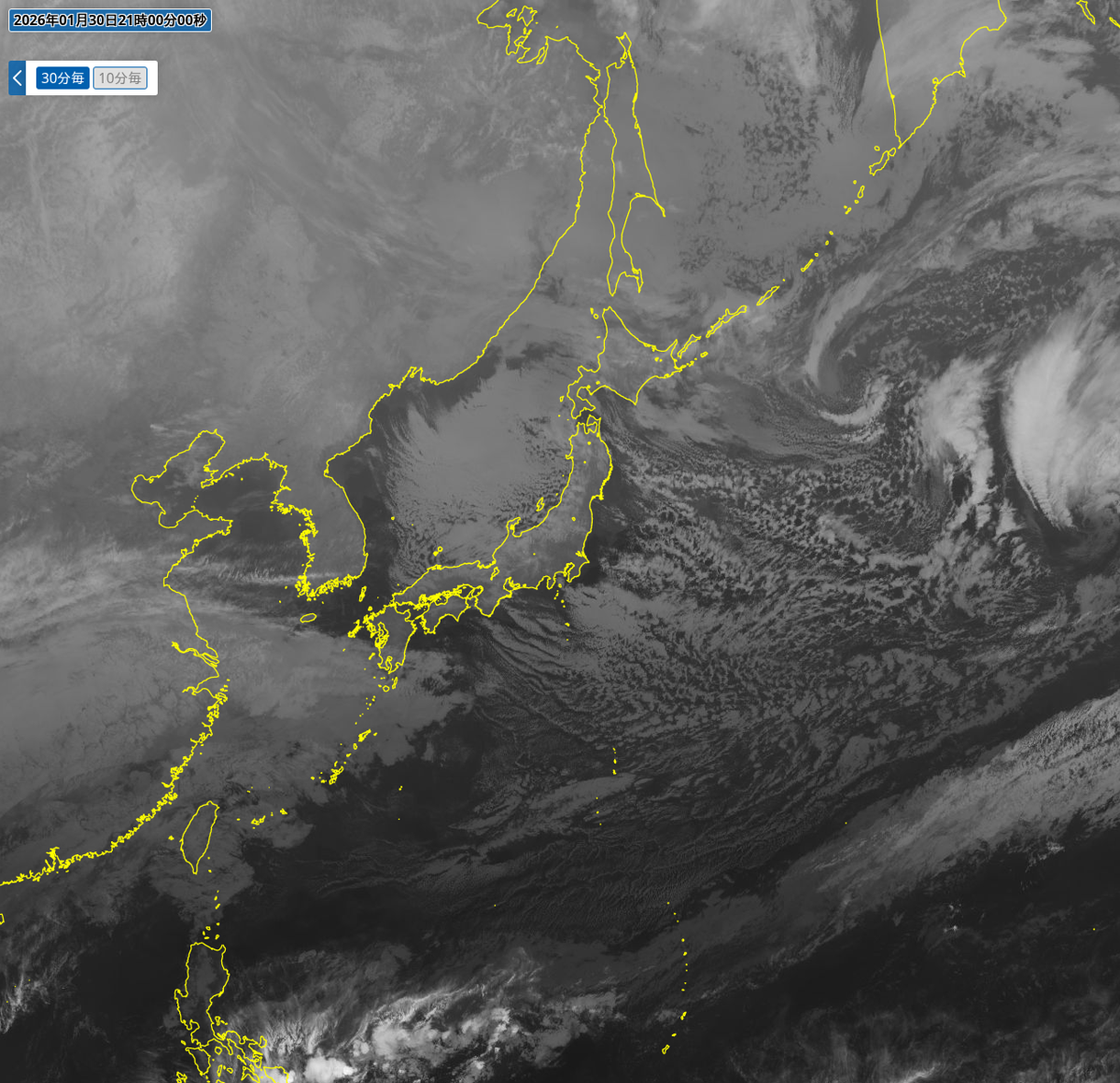 指定日の10日前からの気象画像をピックアップして表示しています。